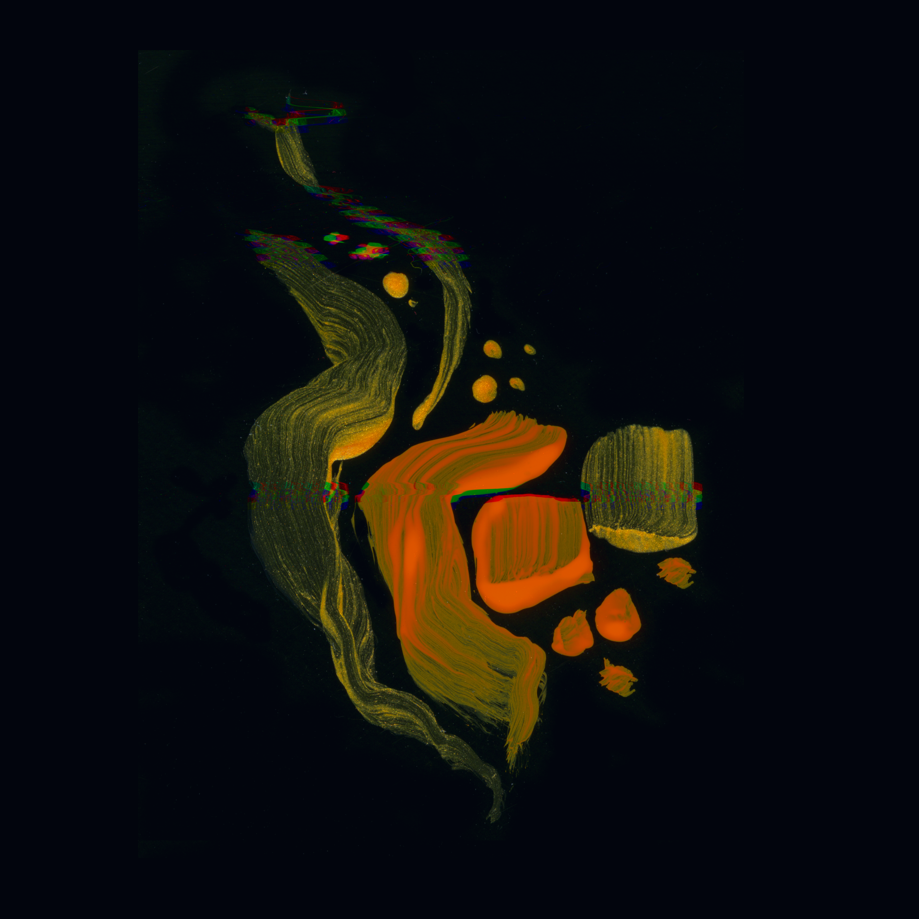 The kaleidoscopic images serve as portals to represent the universe that Moorehead and Benson have created in their films. The movies rarely, if ever, show you a direct shot of the main “monster”, so this abstracted representation felt like an appropriate method of displaying their presence. The visuals were made using scanography, an experimental image making technique. I applied a small amount of acrylic paint to a sheet of acetate, then scanned it at a super high resolution. The raw scans were manipulated in Photoshop, and then furthered with hand drawn details in Procreate. This method allowed me to experiment and explore with great freedom, and conceptually relate to the films.
